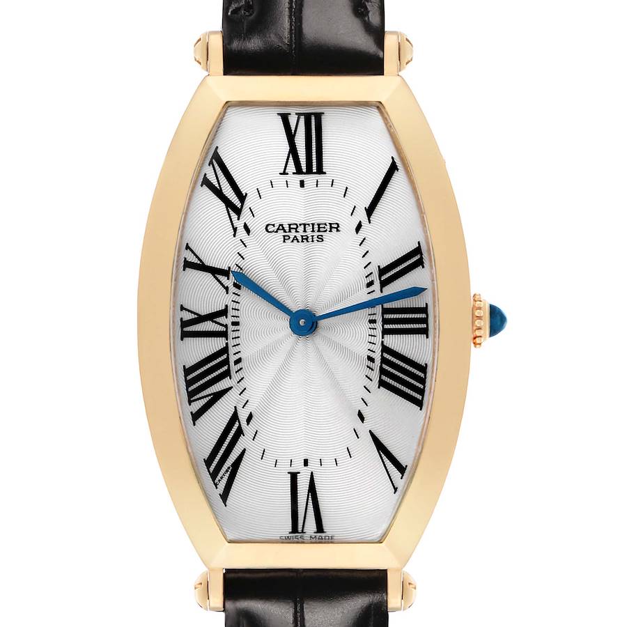 | Model Name: | Cartier Tonneau CPCP Yellow Gold Silver Dial Mens Watch W1527651 Box Papers |