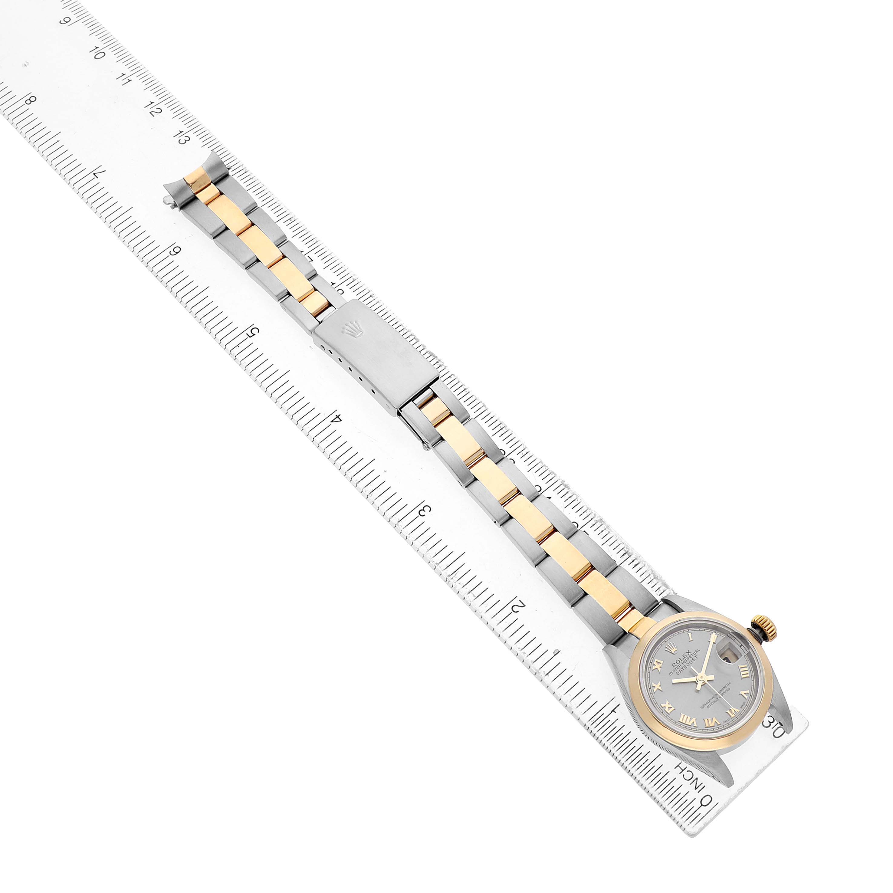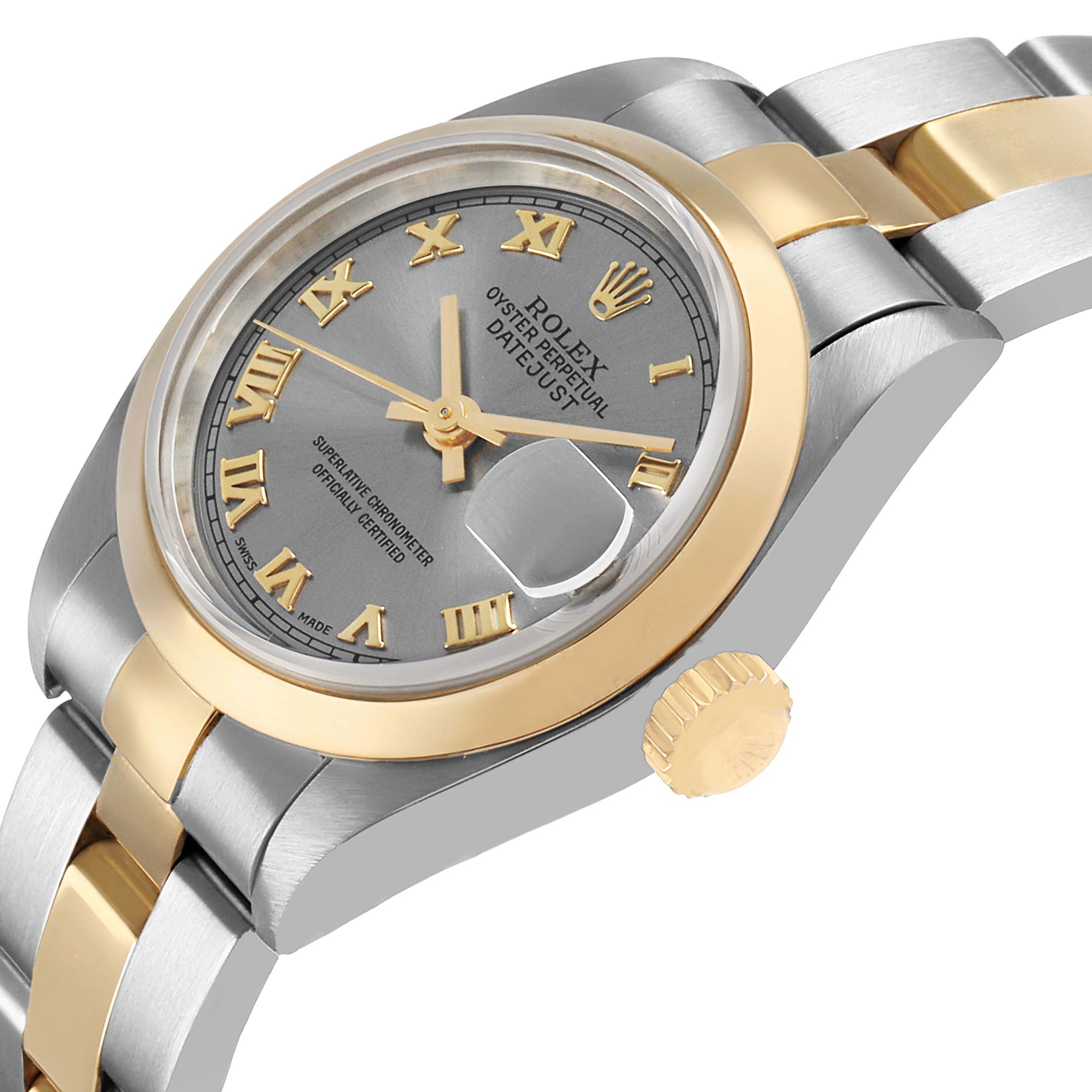 | Model Name: | Rolex Datejust 26 Steel Yellow Gold Slate Roman Dial Ladies Watch 79163 |