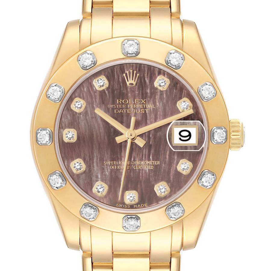 | Model Name: | Rolex Pearlmaster Midsize Yellow Gold Mother of Pearl Diamond Ladies Watch 81318 |