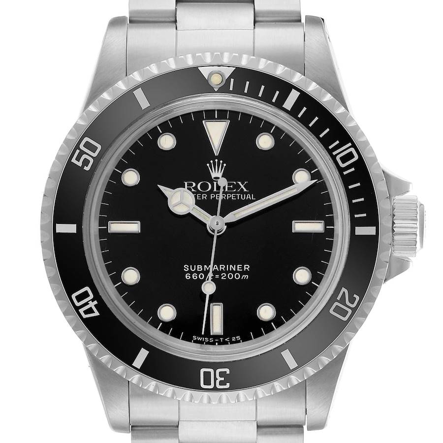 Rolex Submariner Black Dial Vintage Steel Mens Watch 5513. Automatic self-winding movement. Stainless steel case 40.0 mm in diameter. Stainless steel bi-directional divers bezel with black insert. Domed acrylic crystal. Black dial with luminous hands and hour markers. Stainless steel bracelet with flip lock clasp. Fits 7.5" wrist.
